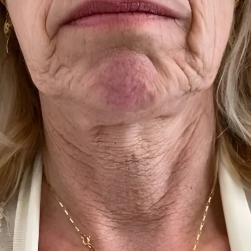- A lack of jawline definition and jowl softening